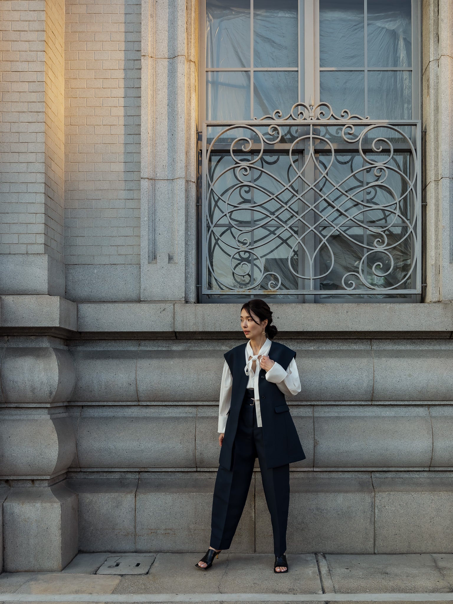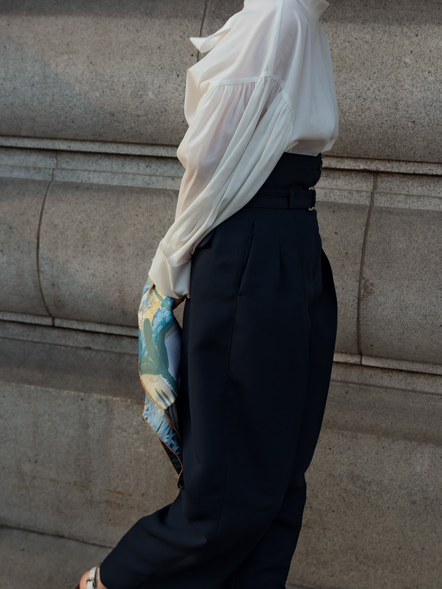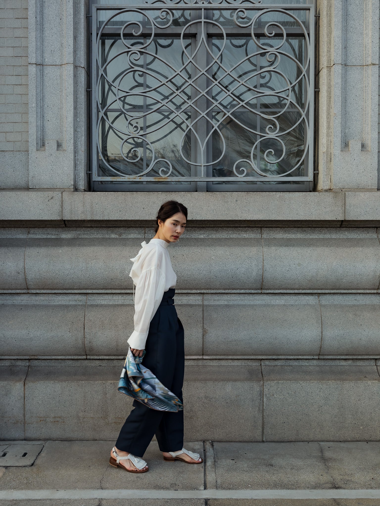 These pants are made with the hope that you will take a step forward with deres. The design is calculated to look flattering on all body types and heights, and we have repeatedly prototyped and examined the fabrics to achieve a beautiful, relaxed silhouette. We have selected the finest materials from among these. Just one pair of pants may change who you are tomorrow. A little courage may bring out a charm in you that you never knew existed. These are deres' signature items, and their beauty will captivate anyone who wears them.