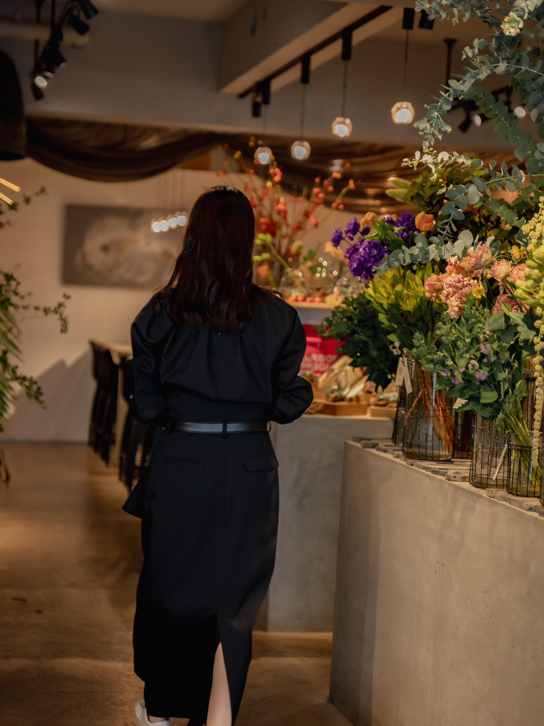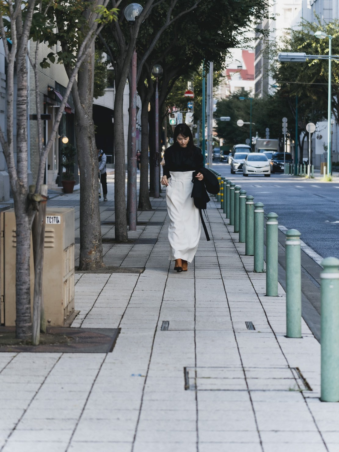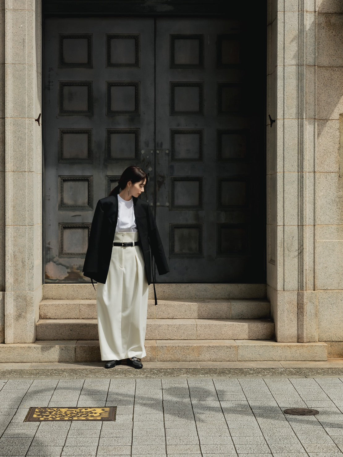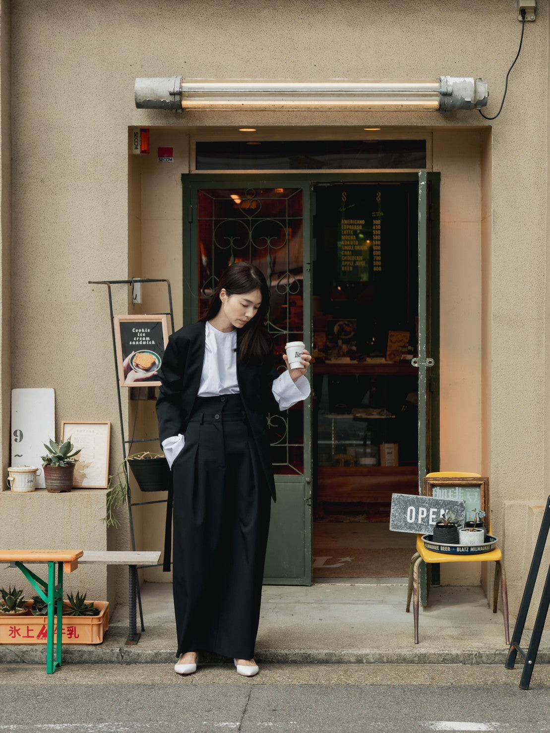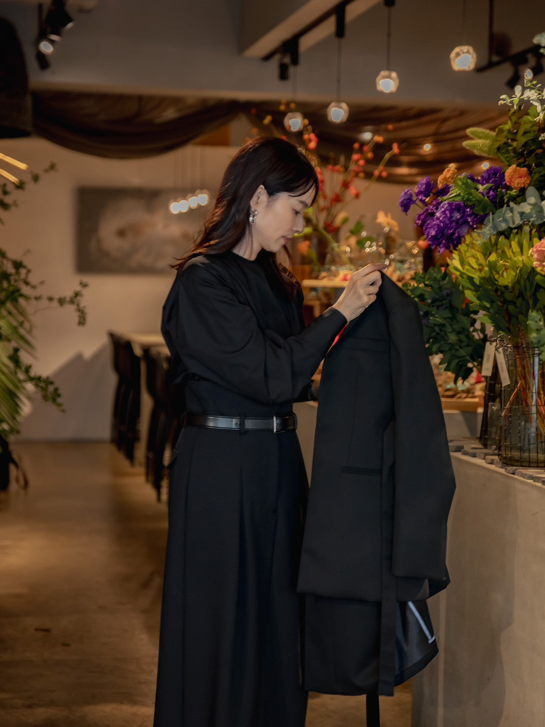 It has no collar, so you can wear it casually like a T-shirt, and it has a balance of elegance without being too dressy.