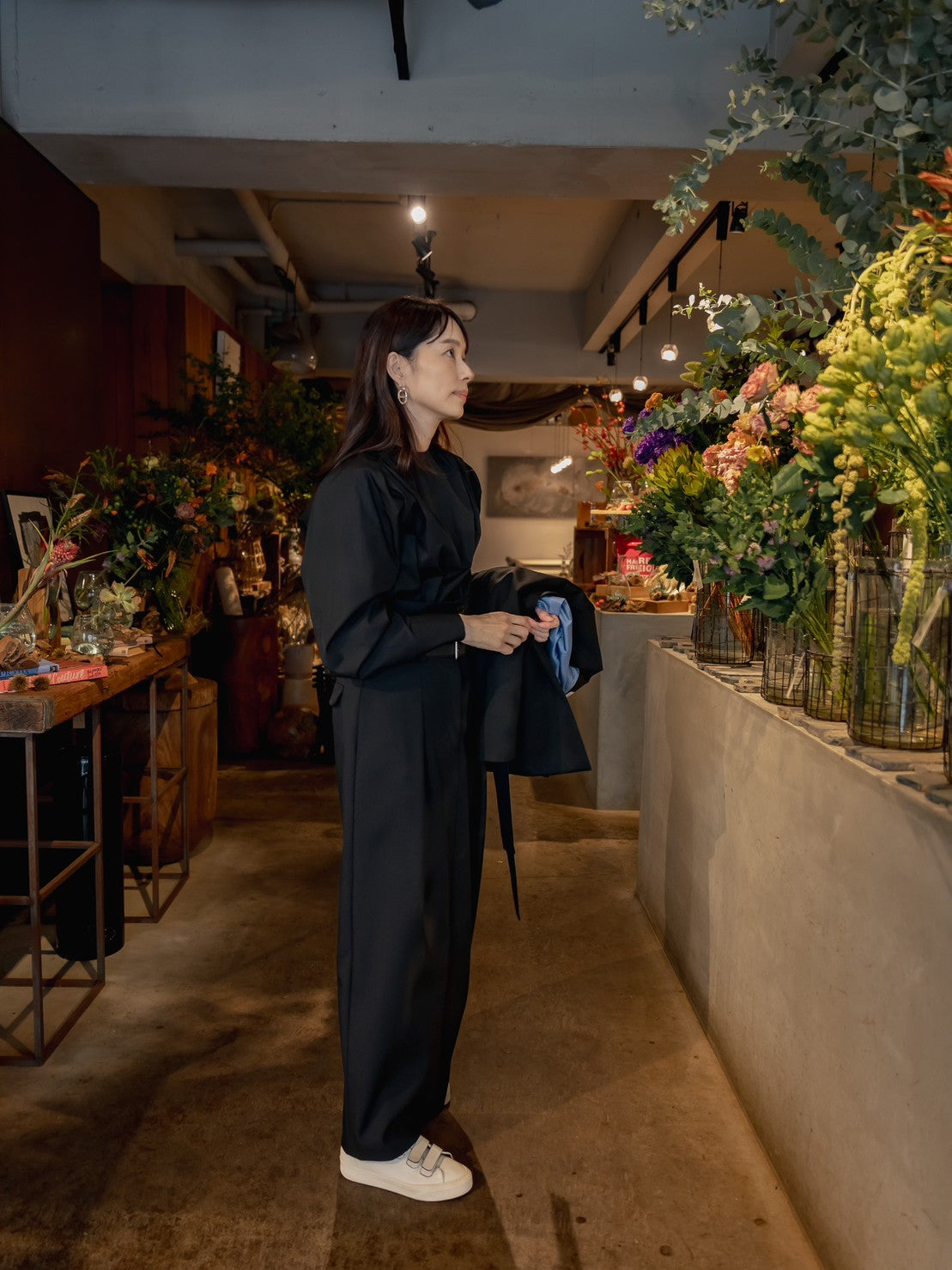 The cuffs are intentionally made wider to balance the drape, so you can roll them up or cinch them down to suit your taste and body type.