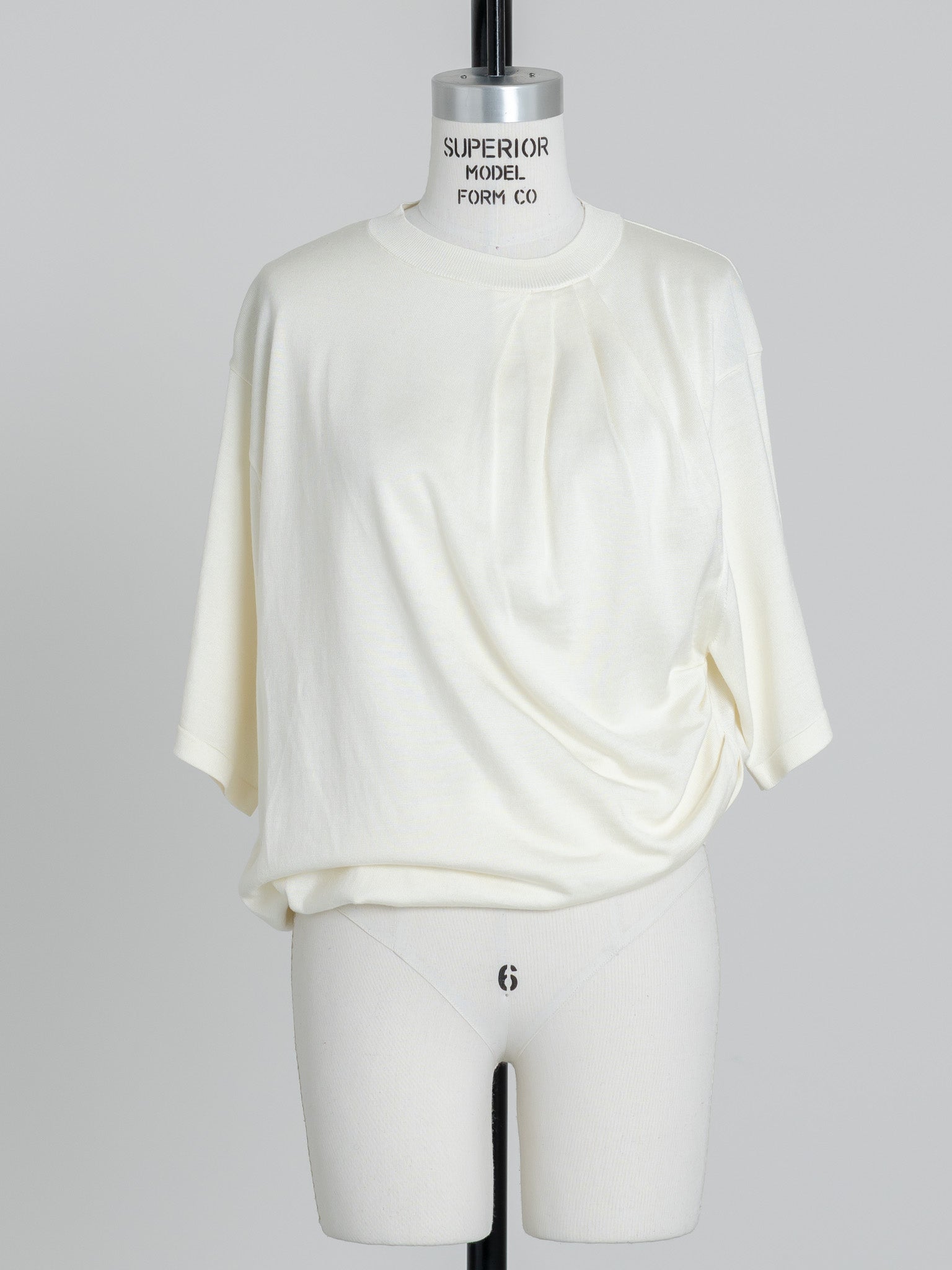 deresらしいドレープが美しいニットを、手洗いしていただけるすべすべで滑らかな手触りのシルクコットンでお作りしました