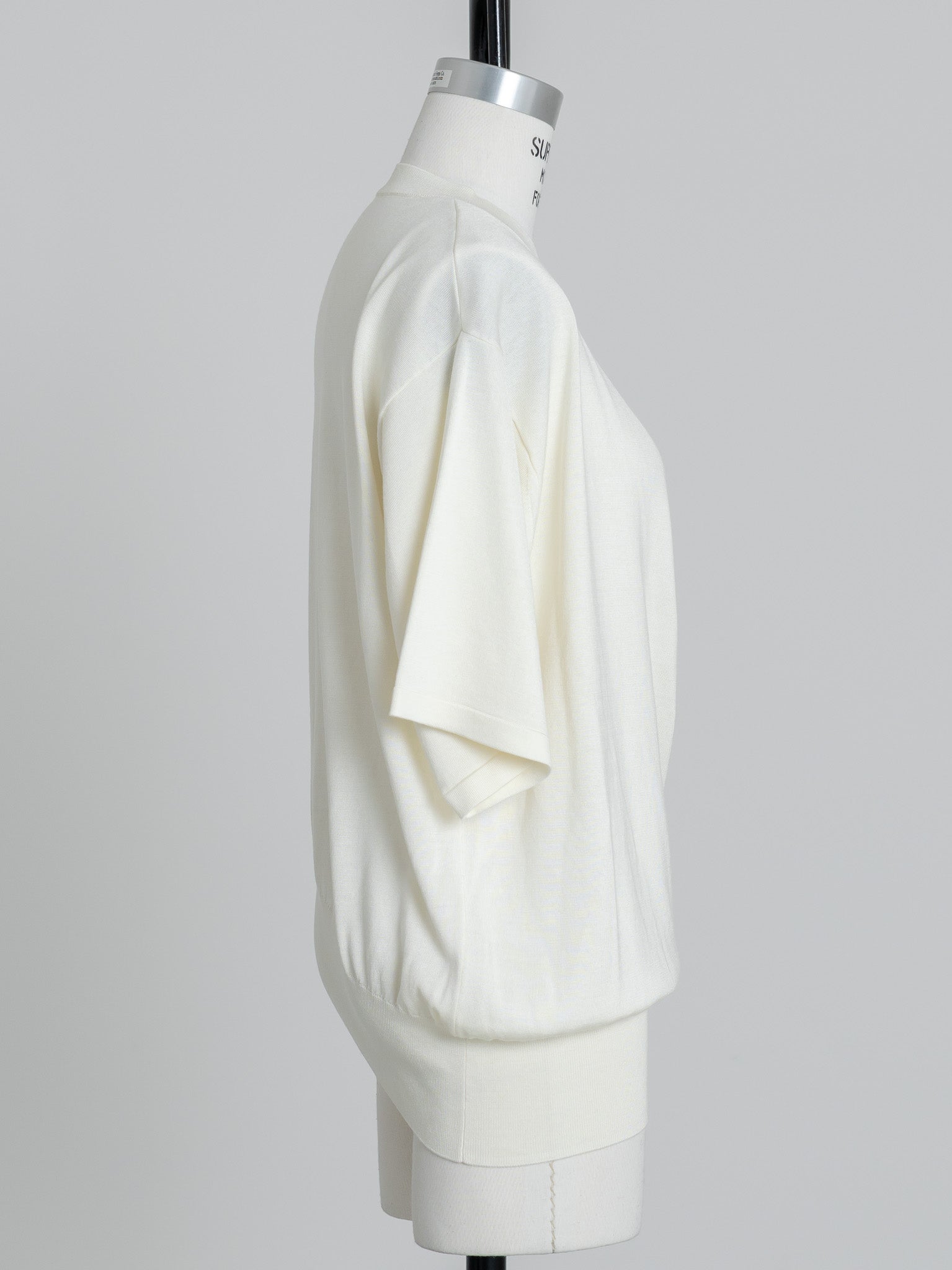こちらは18th collectionのハイネックをクルーネックに変更し、お袖を五分丈にすることでより長い季節にお楽しみいただけるようになっております