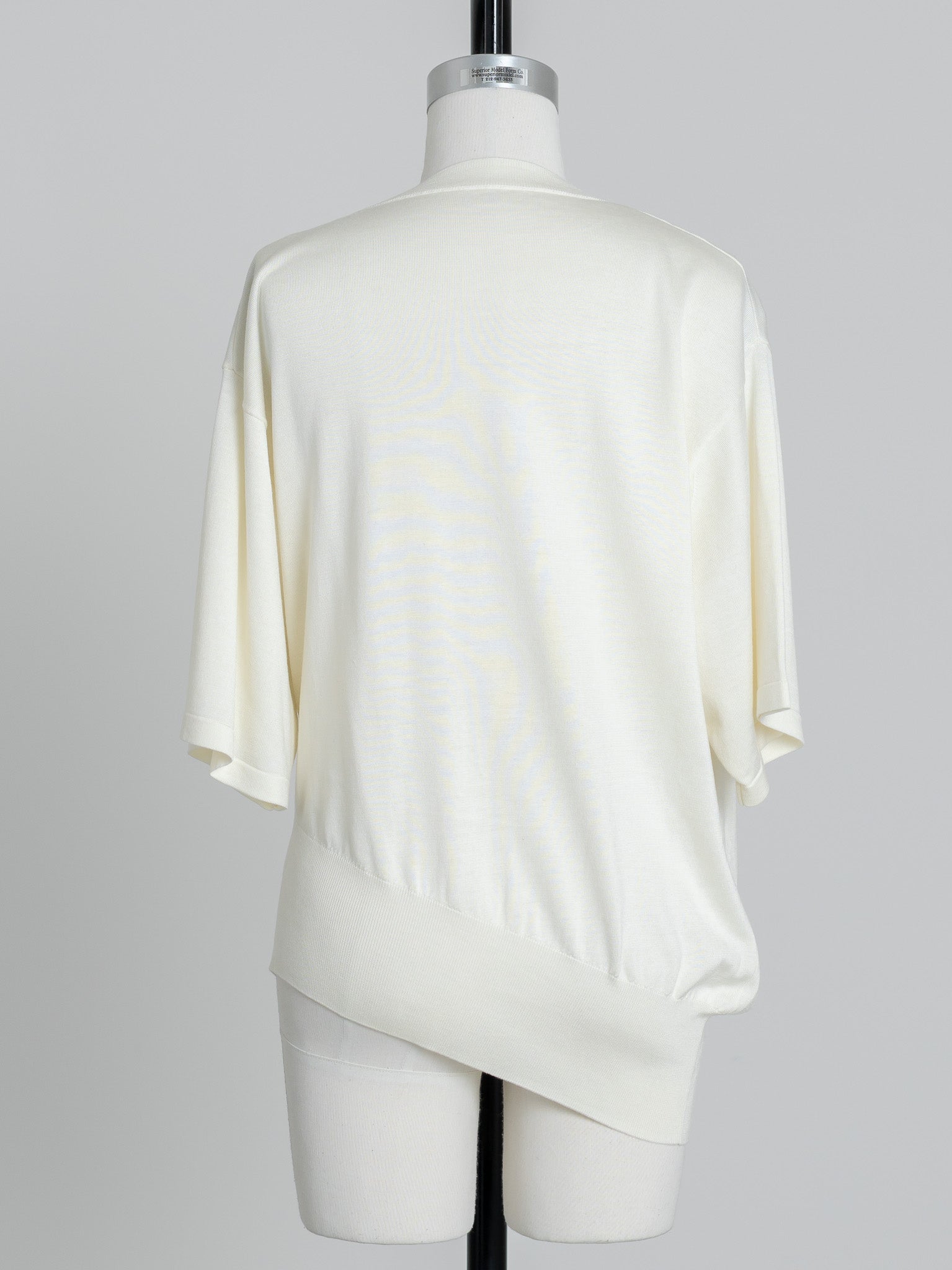 清涼感はあるのに、白でも透けにくく、シルクの艶が美しいセーターはお仕事にも相応しい上品さです