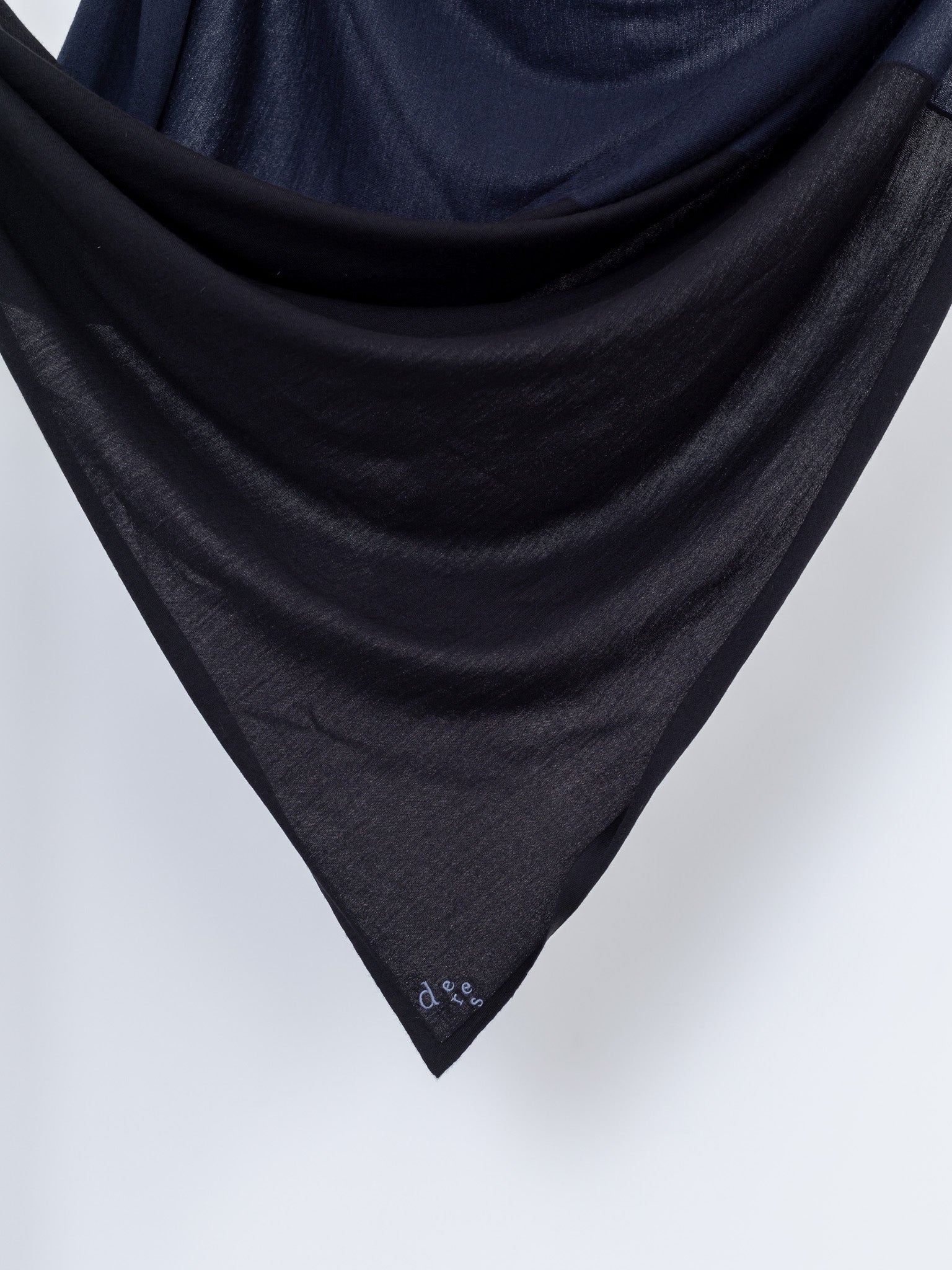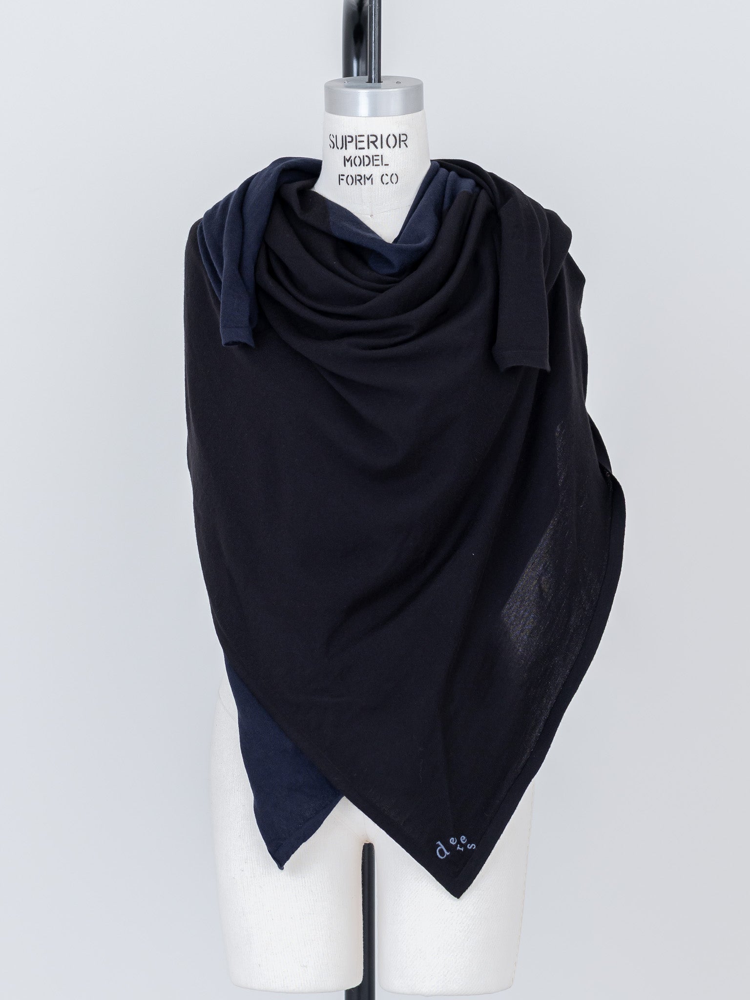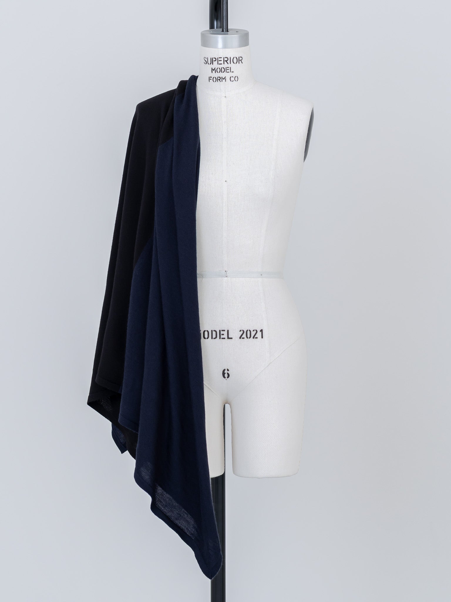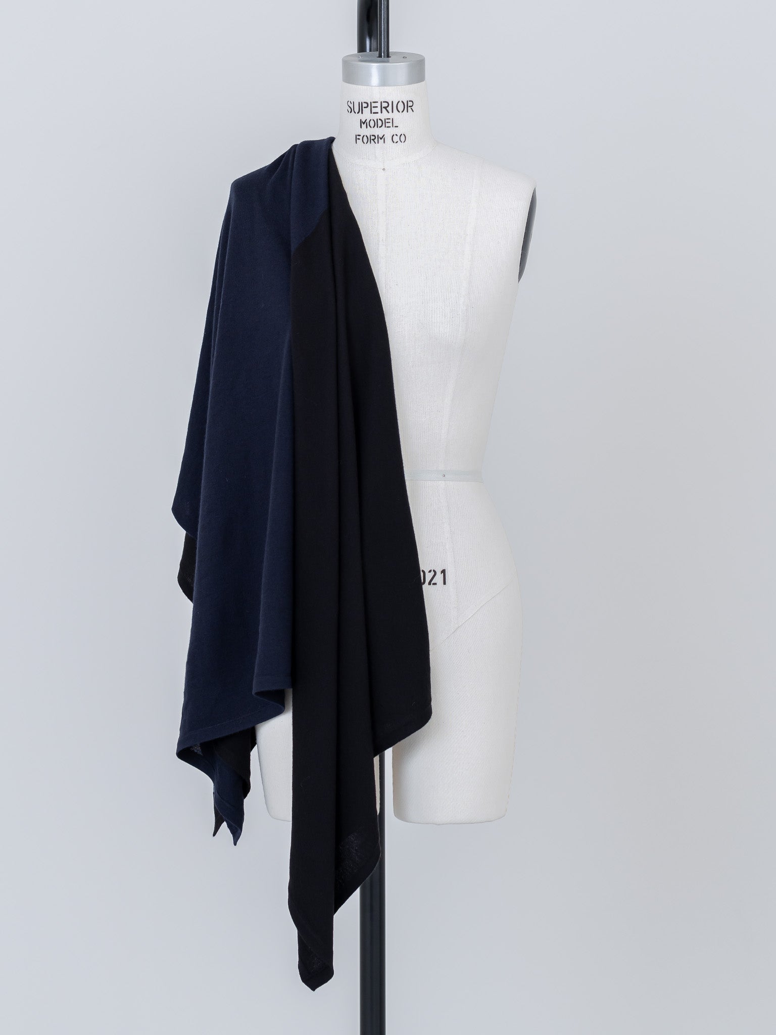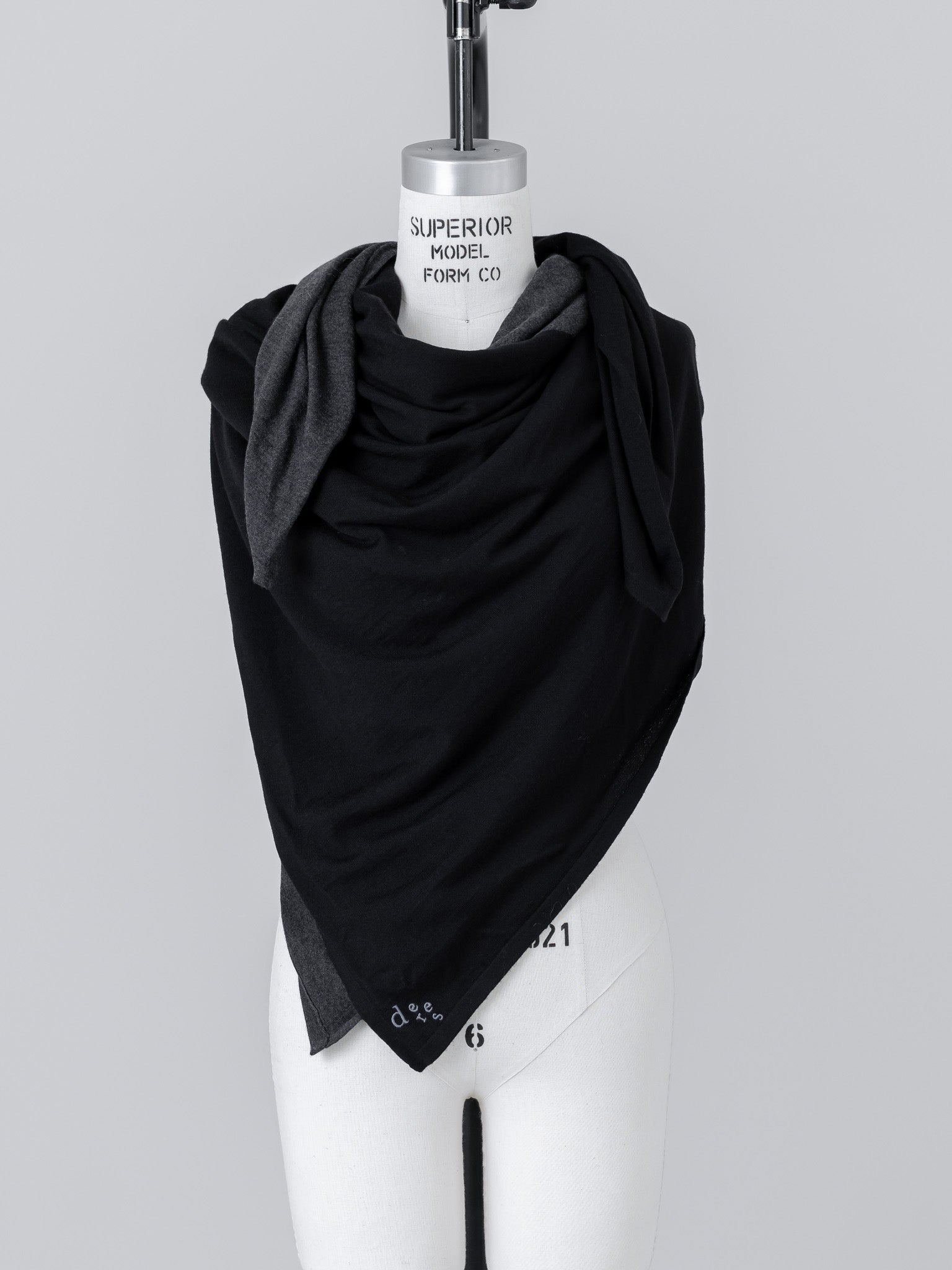 ストールは左右でお色が違うバイカラーのデザインになっており、三角に折って巻いていただくと自然に両方のお色が表面に現れるため、単色のストールよりも立体的な表情をお楽しみいただけます