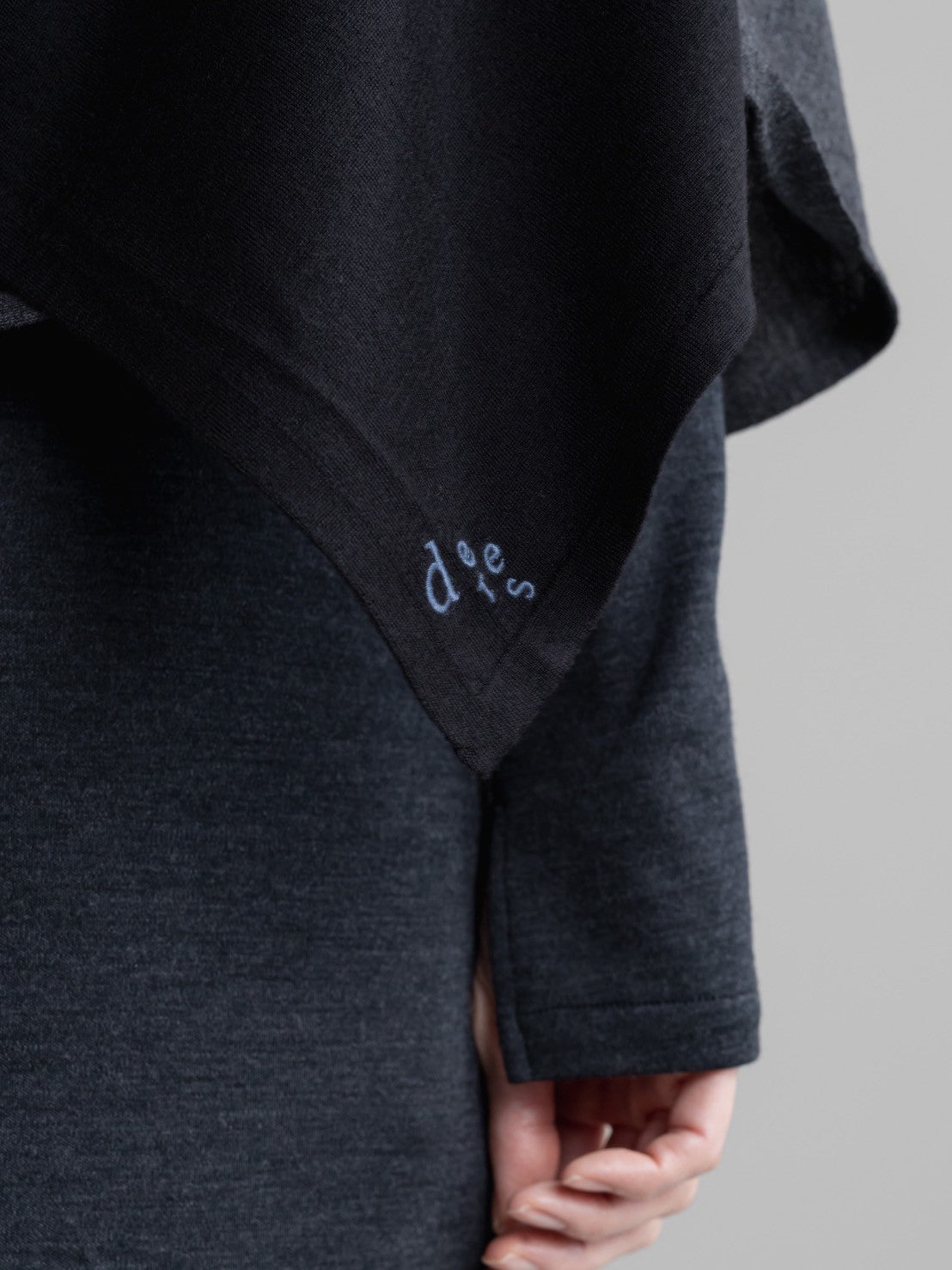 ストールの一か所にリズミカルな配置と配色のderesロゴを刺繍を施しています。